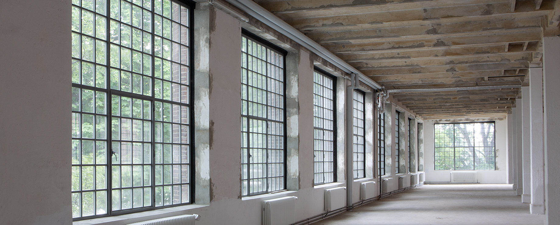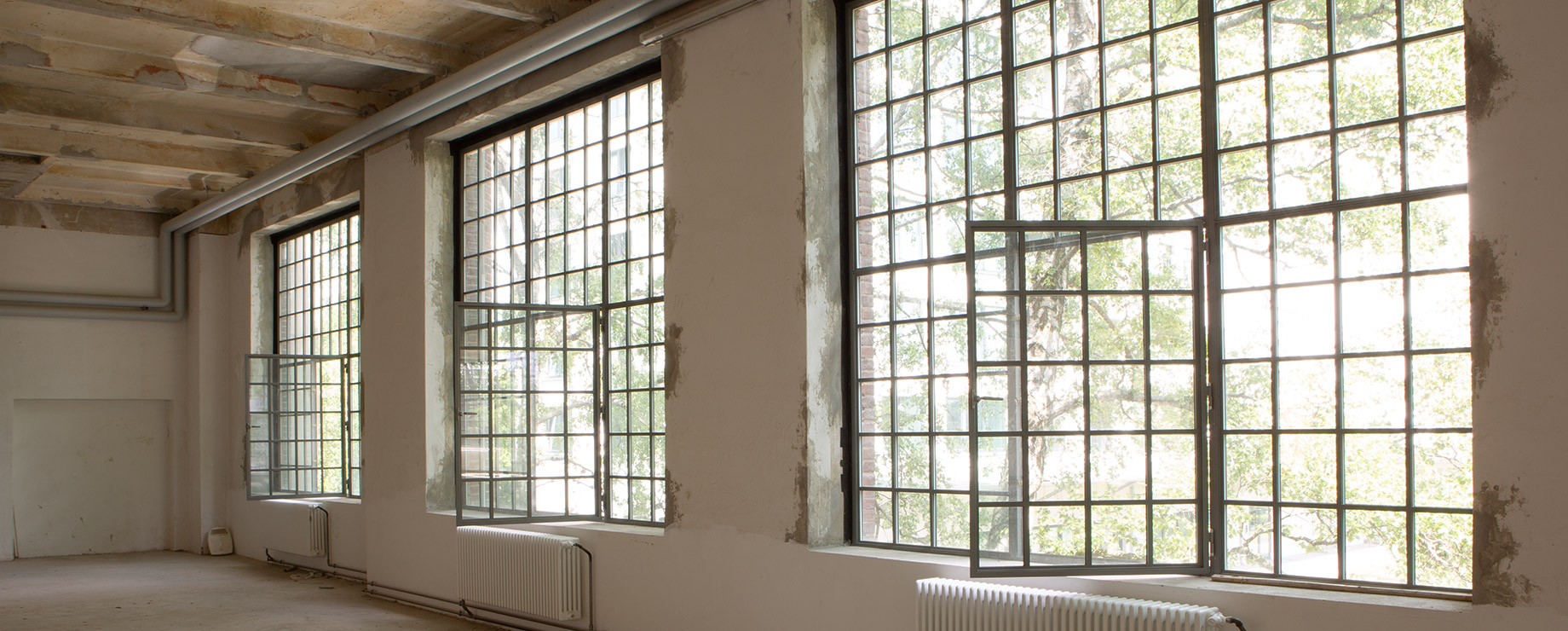 MASSIFCENTRAL modernized the former „Munitions Factory“ (built in 1913) of Kaiser Wilhelm II on the island of Eiswerder, which is now a listed building, with high-quality, thermally separated steel windows on the 1st and 2nd floor (construction phase II). Due to the partly very large window installations with up to 120 Viennese muntins, a spectacular use as a modern office building could be ensured within the framework of the demanding monument specifications.
